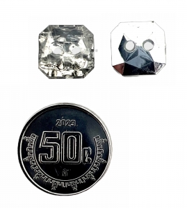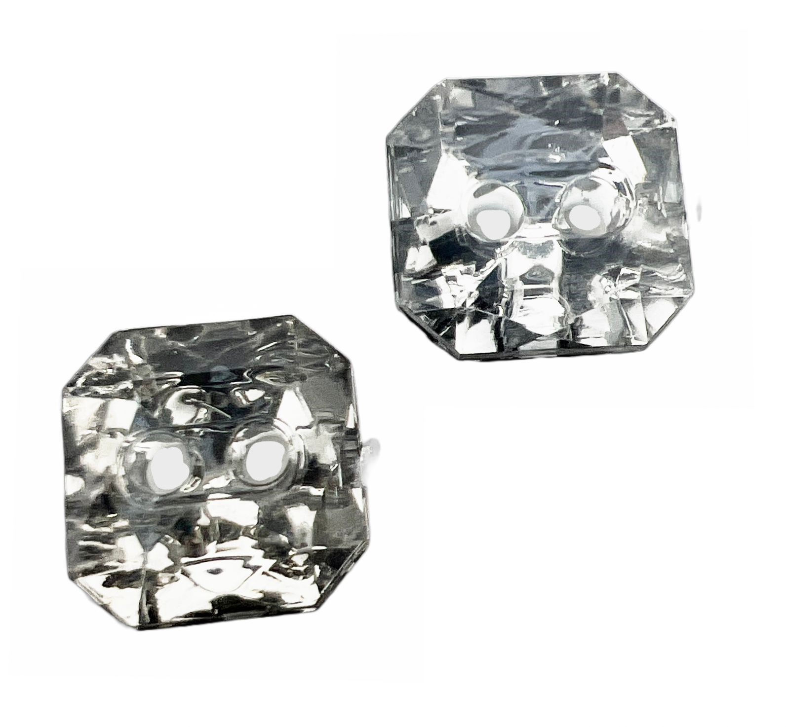 BOTON ACRILICO CUADRADO 2OJOS TAM 20 (12MM) C/50 PIEZAS