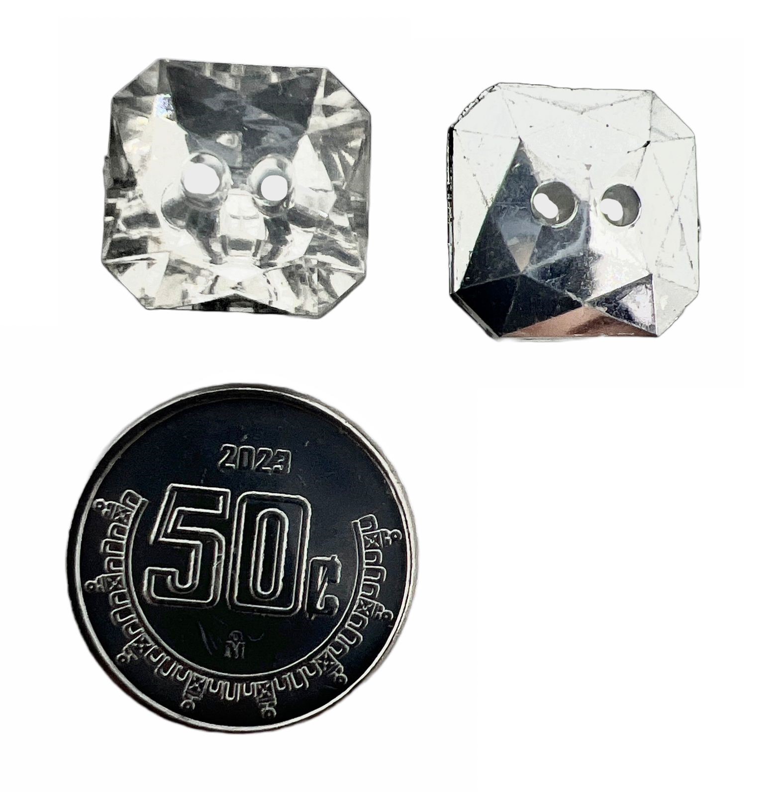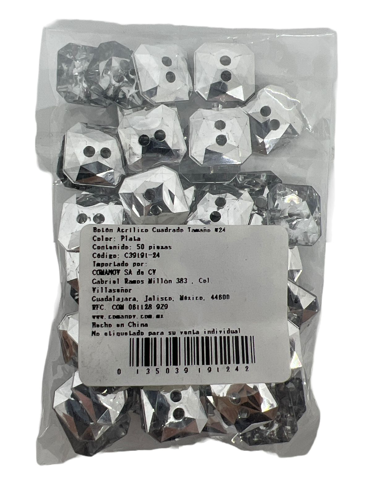 BOTON ACRILICO CUADRADO 2OJOS TAM 24 (15MM) C/50 PIEZAS