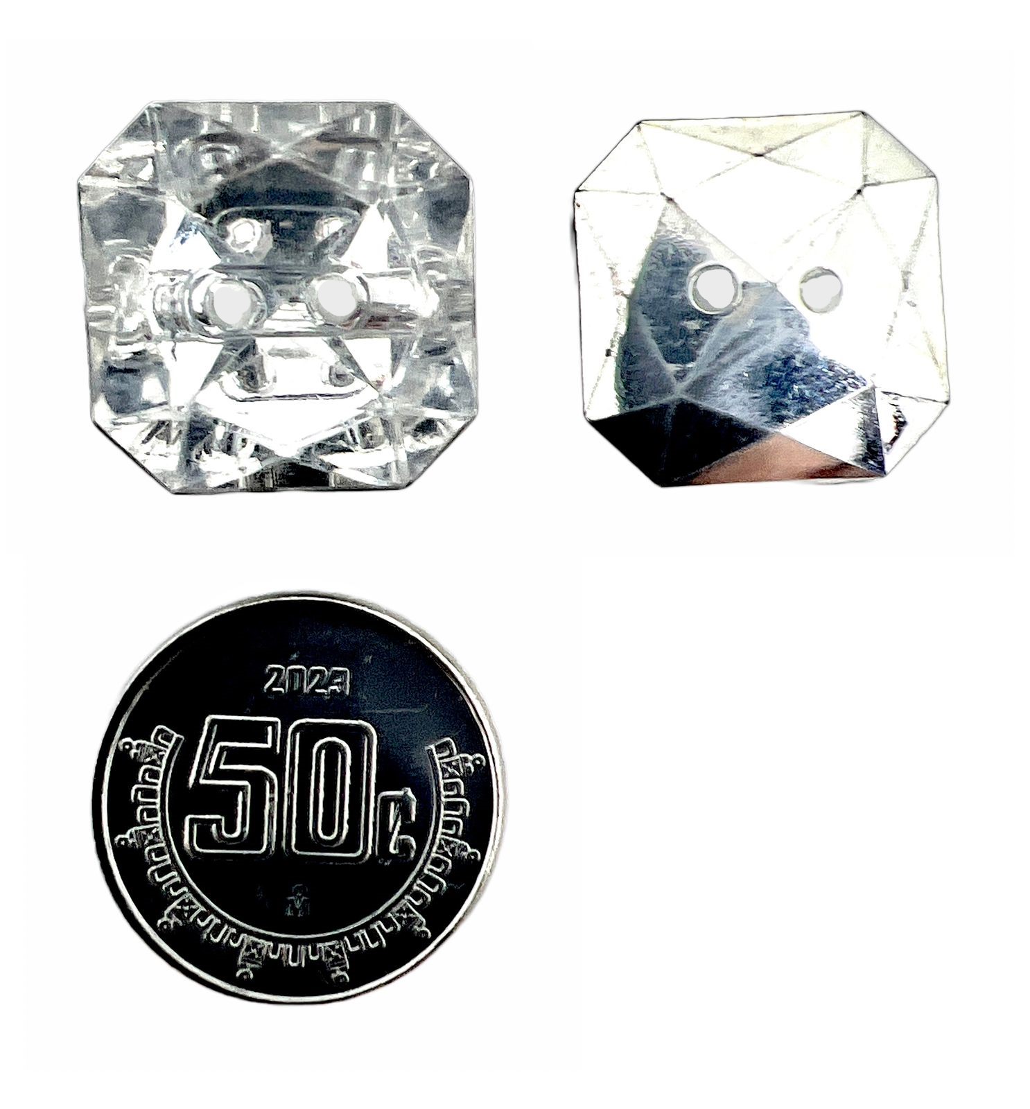 BOTON ACRILICO CUADRADO 2OJOS TAM 28 (17MM) C/50 PIEZAS