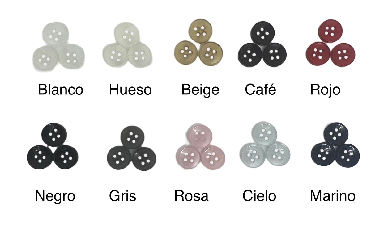 BOTON CAMISERO 4OJOS TAM 14 ( 9MM) C/144 PIEZAS