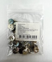 BOTON CONCHA MULTICOLOR REDONDO CON 2 OJOS 9MM TAM #14 C-50. CARTON CON 300 BOLSAS DE 50 PIEZAS.