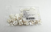 BOTON CONCHA BLANCO MODELO FLOR CON 2 OJOS 11MM TAM # 18 C-50. CARTON CON 300 BOLSAS DE 50 PIEZAS.