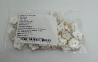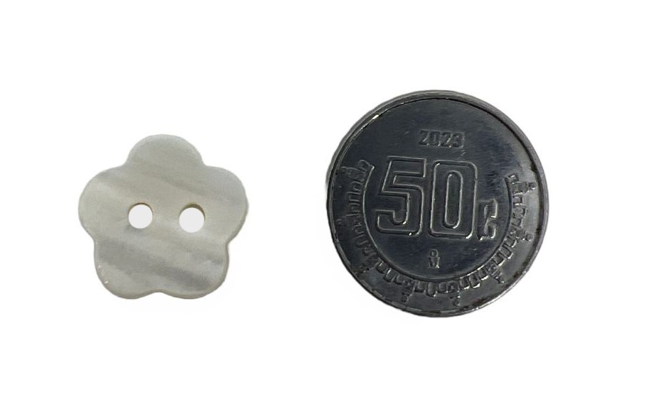 BOTON CONCHA BLANCO MODELO FLOR CON 2 OJOS 12MM TAM # 20 C-50. CARTON CON 300 BOLSAS DE 50 PIEZAS.