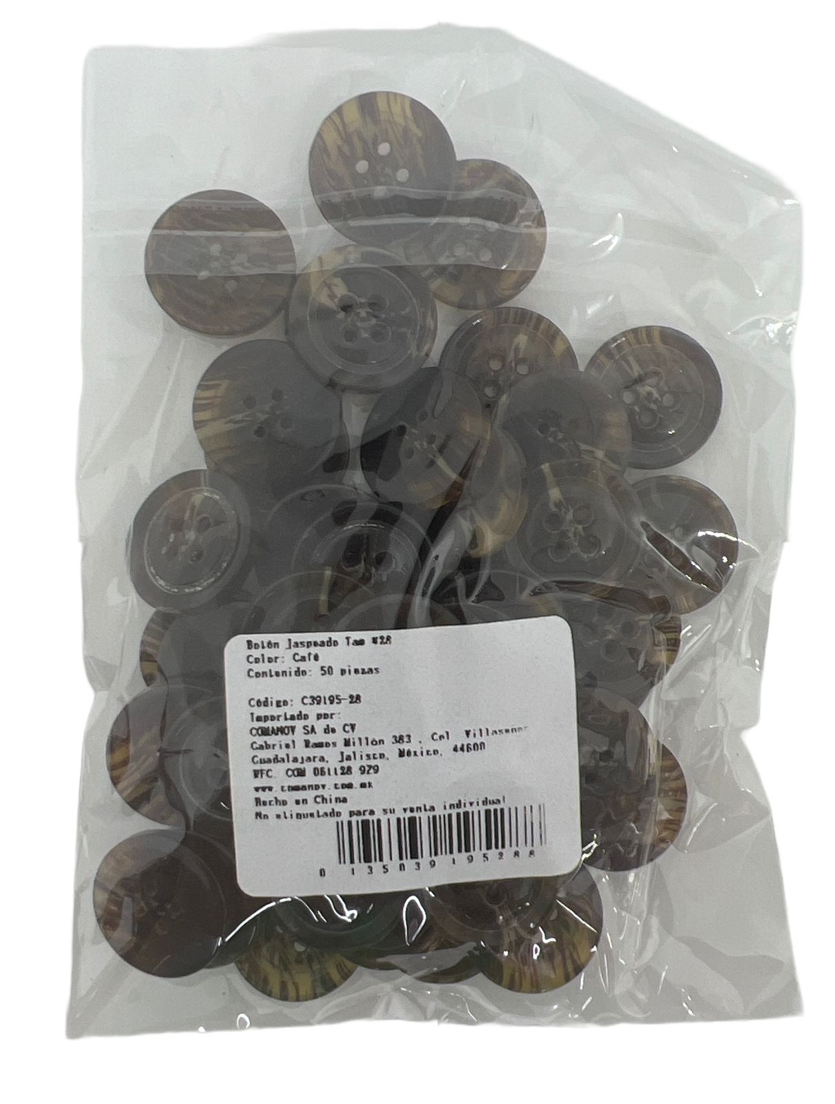 BOTON JASPEADO REDONDO 4OJOS TAM 28 (17MM) C/50 PIEZAS