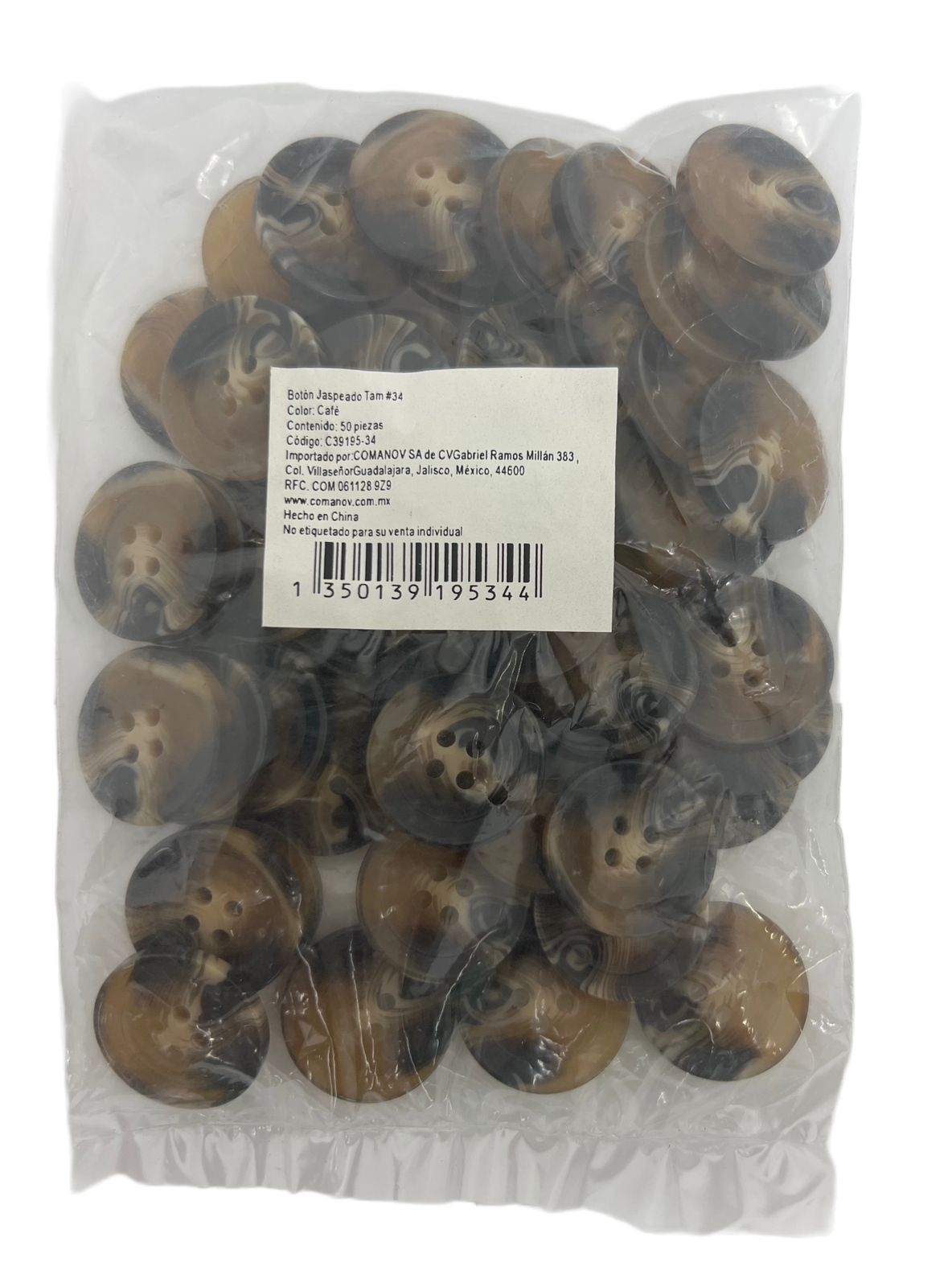 BOTON JASPEADO REDONDO 4OJOS TAM 34 (22MM) C/50 PIEZAS