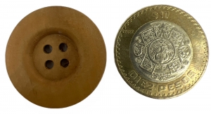 COLORES: HUESO, NATURA Y CAFE OBSCURO. BOTON MADERA MOD. 39169 3CM C-50 (TAM 48). CARTON CON 100 BOLSAS DE 50 PIEZAS.
