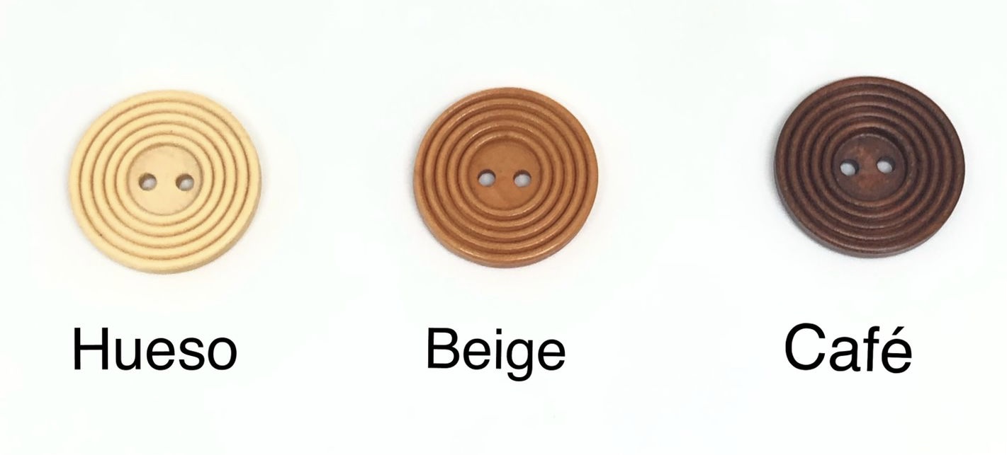 COLORES: HUESO, NATURA Y CAFE OBSCURO. BOTON MADERA MOD. 39171 4CM C-50 (TAM 60) . CARTON CON 100 BOLSAS DE 50 PIEZAS.