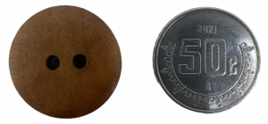 COLORES: HUESO, NATURA Y CAFE OBSCURO. BOTON MADERA MOD. 39173 1.8CM C-50 (TAM 30). CARTON CON 100 BOLSAS DE 50 PIEZAS.