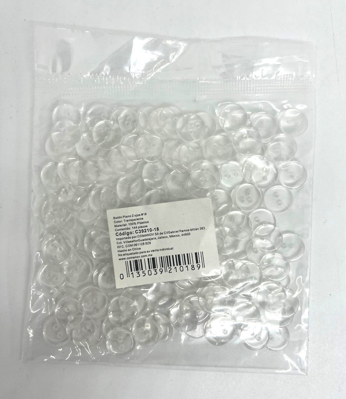 BOTON TRANSPARENTE 2 OJOS TAM 18 (11MM) C/144 PIEZAS
