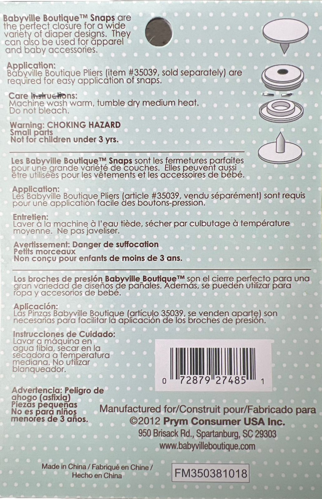 BROCHE PRESION PLASTICO TAM #20 (12MM) C/60 JUEGOS