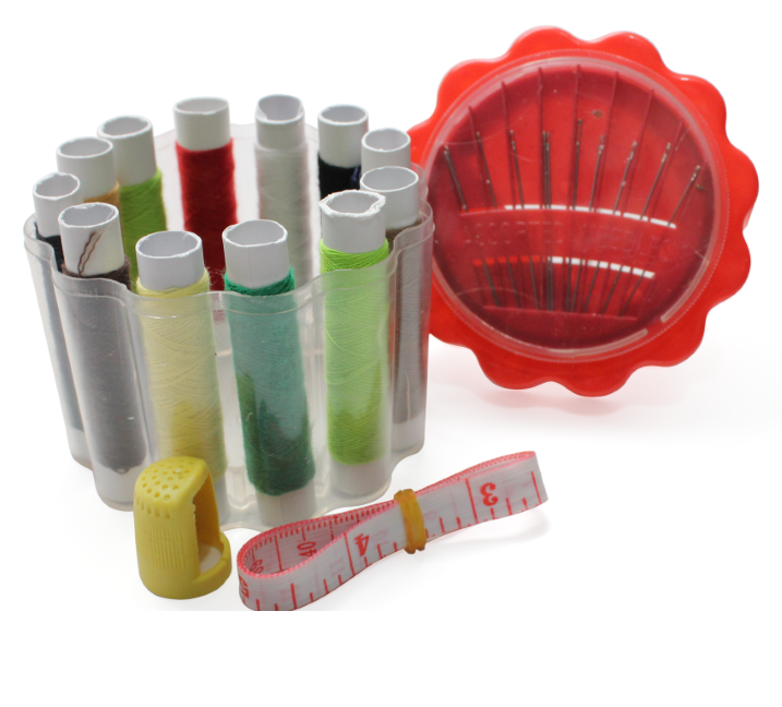 CONTIENE: 12 HILOS, 1 CINTA METRICA, 1 SET DE AGUJAS, 1 DEDAL.
