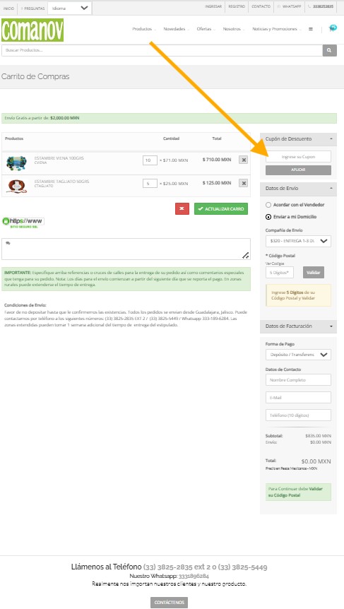 Válidos en www.comanov.com.mx — 1 cupón por compra.