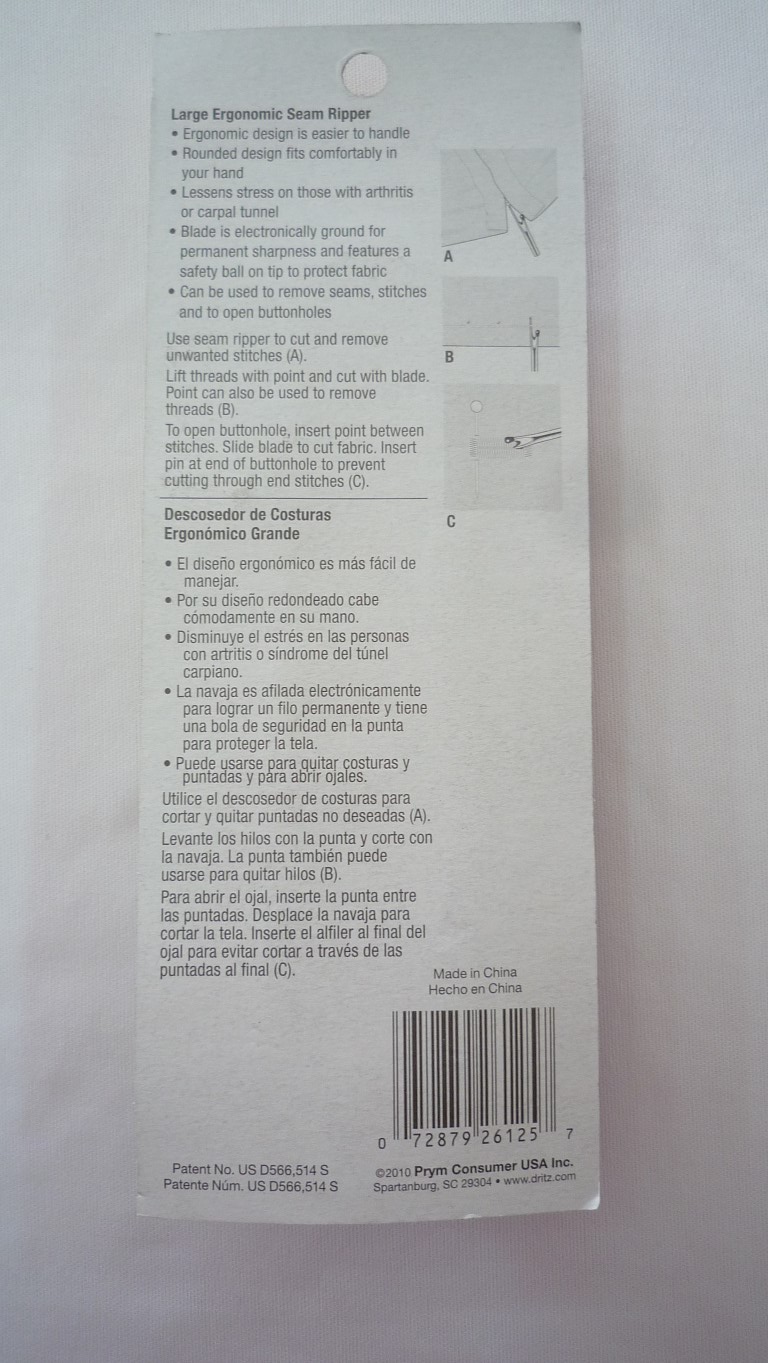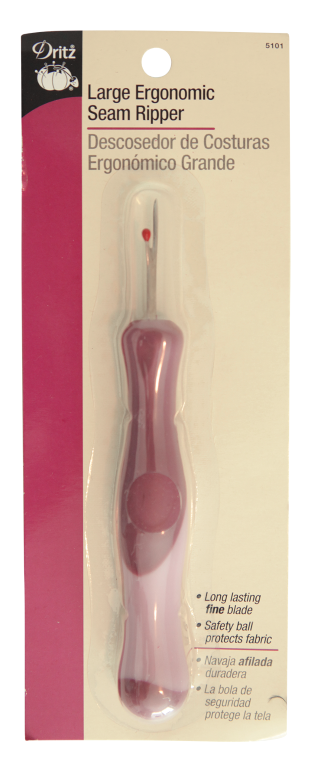 MANEGRO ERGONOMICO PARA FACILITAR SU USO. LA NAVAJA TIENE UNA BOLA DE SEGURIDAD EN LA PUNTA PARA PROTEGER LA TELA. CAJA INTERNA CON 6 PIEZAS. CARTON CON 240 PIEZAS.