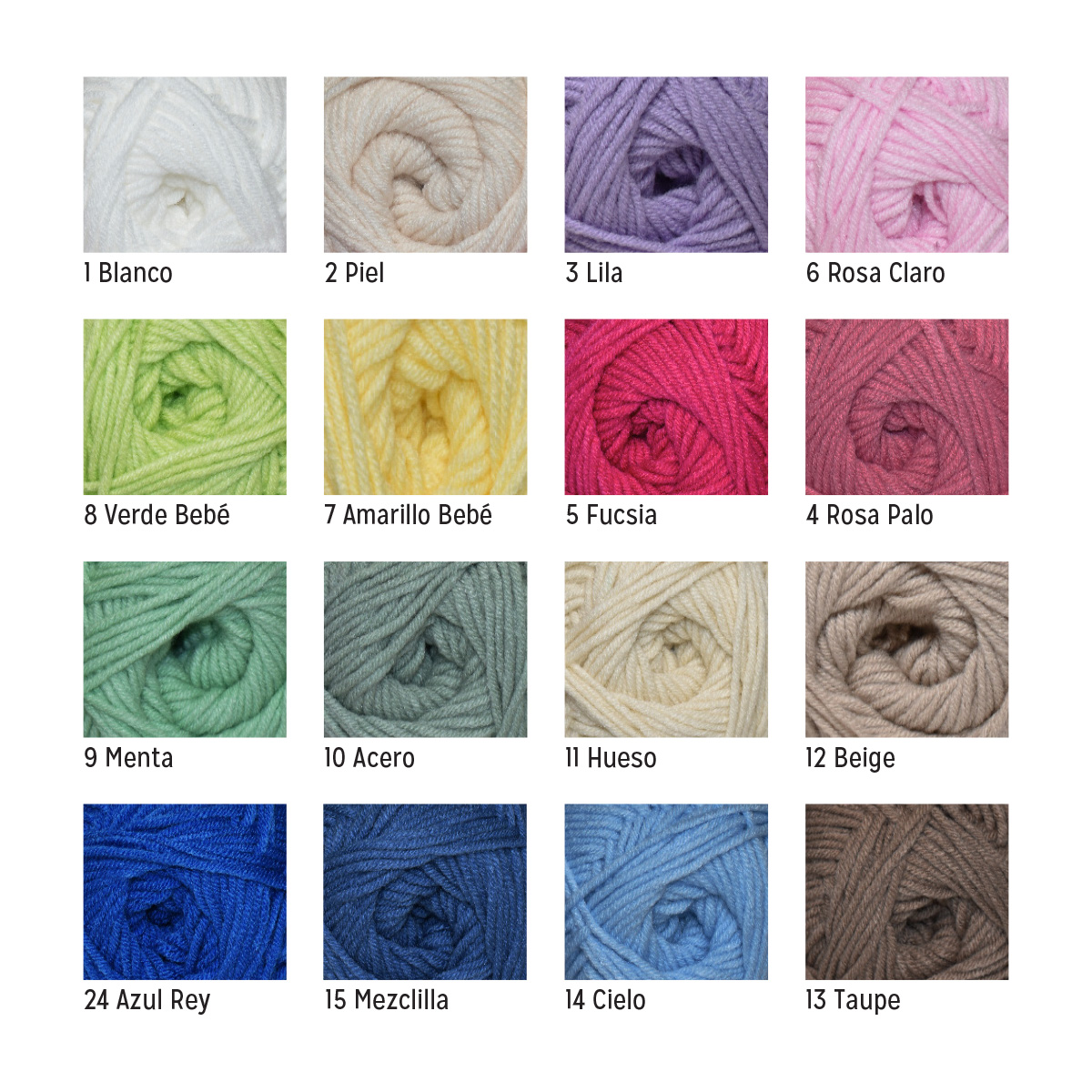 HECHO EN CHINA. ESTAMBRE SUAVE. IDEAL PARA PRENDAS INFANTILES Y AMIGURUMIS. SE RECOMIENDA TEJER CON AGUJAS Y/0 GANCHOS #3.5MM