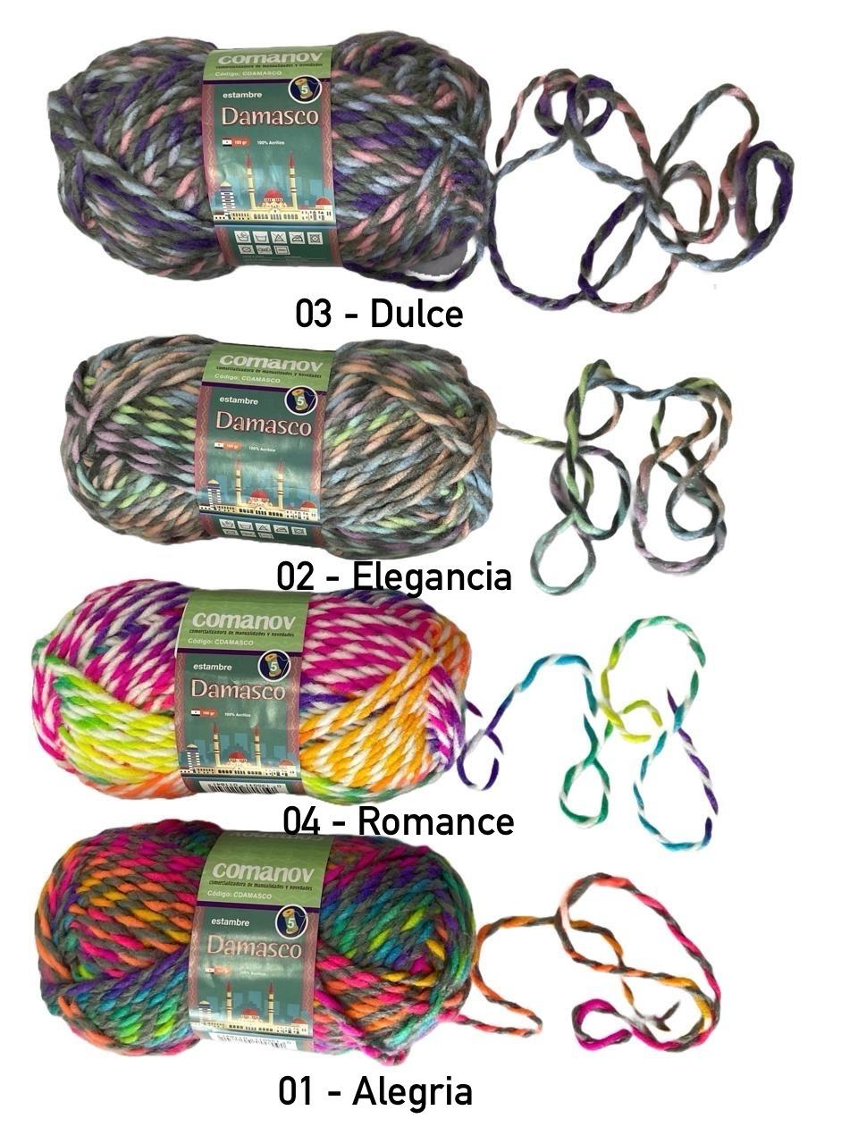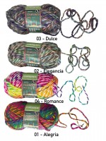 HECHO EN CHINA. SE RECOMIENDAN AGUJAS 8MM Y GANCHO DE ALUMINIO #8. APROXIMADAMENTE 80 METROS POR MADEJA