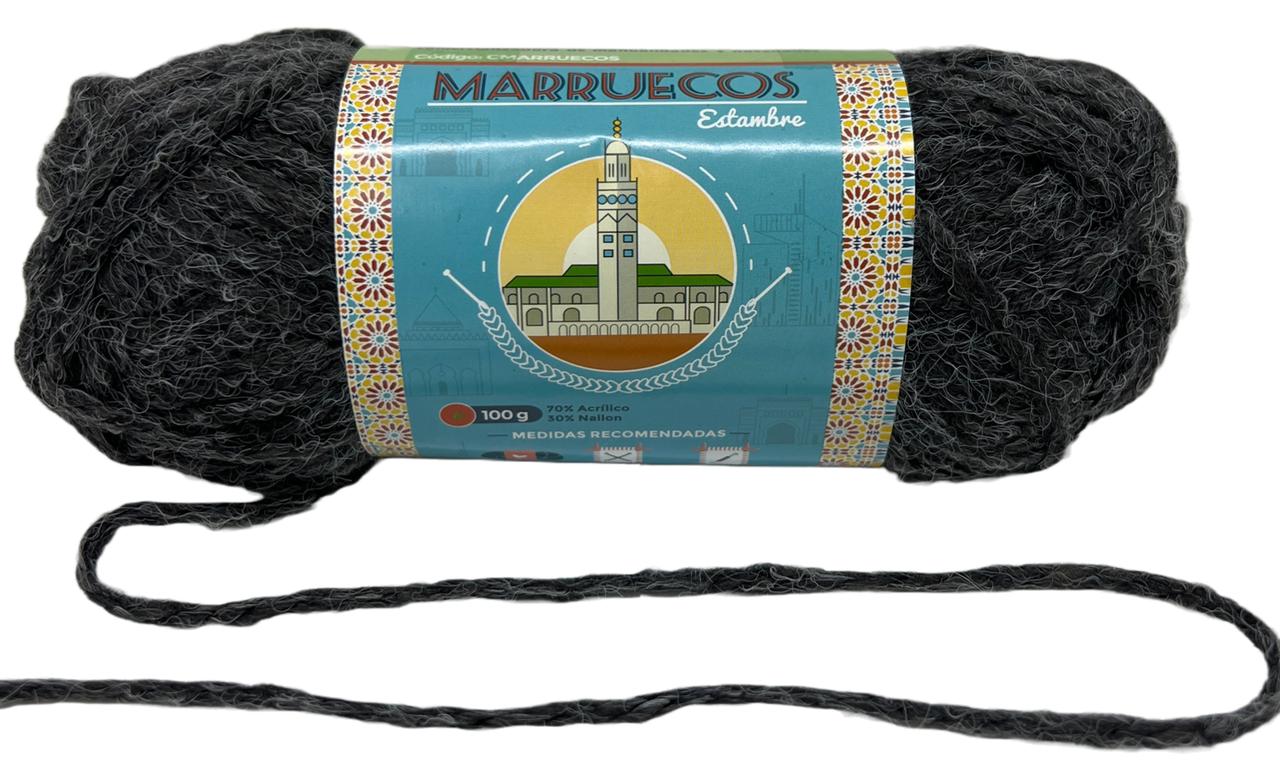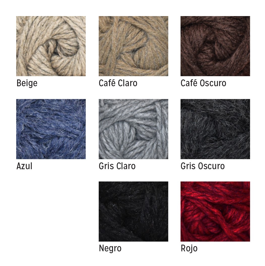MATERIAL: 70% ACRILICO, 30% NAILON. EMPAQUE INTERNO: 5 PIEZAS. CARTON: 100 PIEZAS. APROXIMADAMENTE 120 METROS POR MADEJA