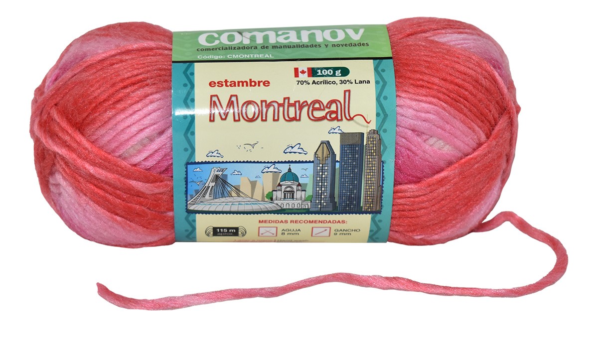 MATERIAL: 70% ACRIL Y 30% LANA. APROXIMADAMENTE 115 METROS POR MADEJA. EMPAQUE INTERNO 5 PIEZAS. CARTON CON 50 PIEZAS