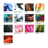 COLORES: NEGRO, AZULES, AZUL-VERDE-MORADO, BLANCO-NEGRO, CAFÉ-NARANJA , CAFES , CARAMEL, ESME-CAFÉ , GRISES , MORADO-CAFÉ , ROSA-CAFE , ROSAS Y VERDES. EMPAQUE INTERNO CON 6 PIEZAS. CARTON CON 72 PEZAS. HECHO EN CHINA. MATERIAL: 100% ACRILICO. SE RECOMIENDAN AGUJAS DEL #10 Y GANCHO DE PLASTICO #12. APROXIMADAMENTE 26 METROS POR MADEJA