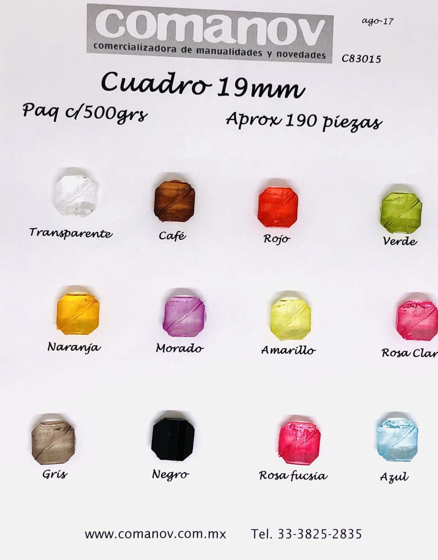 COLORES: TRANSP, CAFÉ, ROJO, VERDE, NARANJA, MORADO, AMARILLO, ROSITA, GRIS, NEGRO, FUCSIA Y AZUL. APROXIMADAMENTE 190 PIEZAS EN 500GR. CARTON CON 20 BOLSAS DE 500GR.