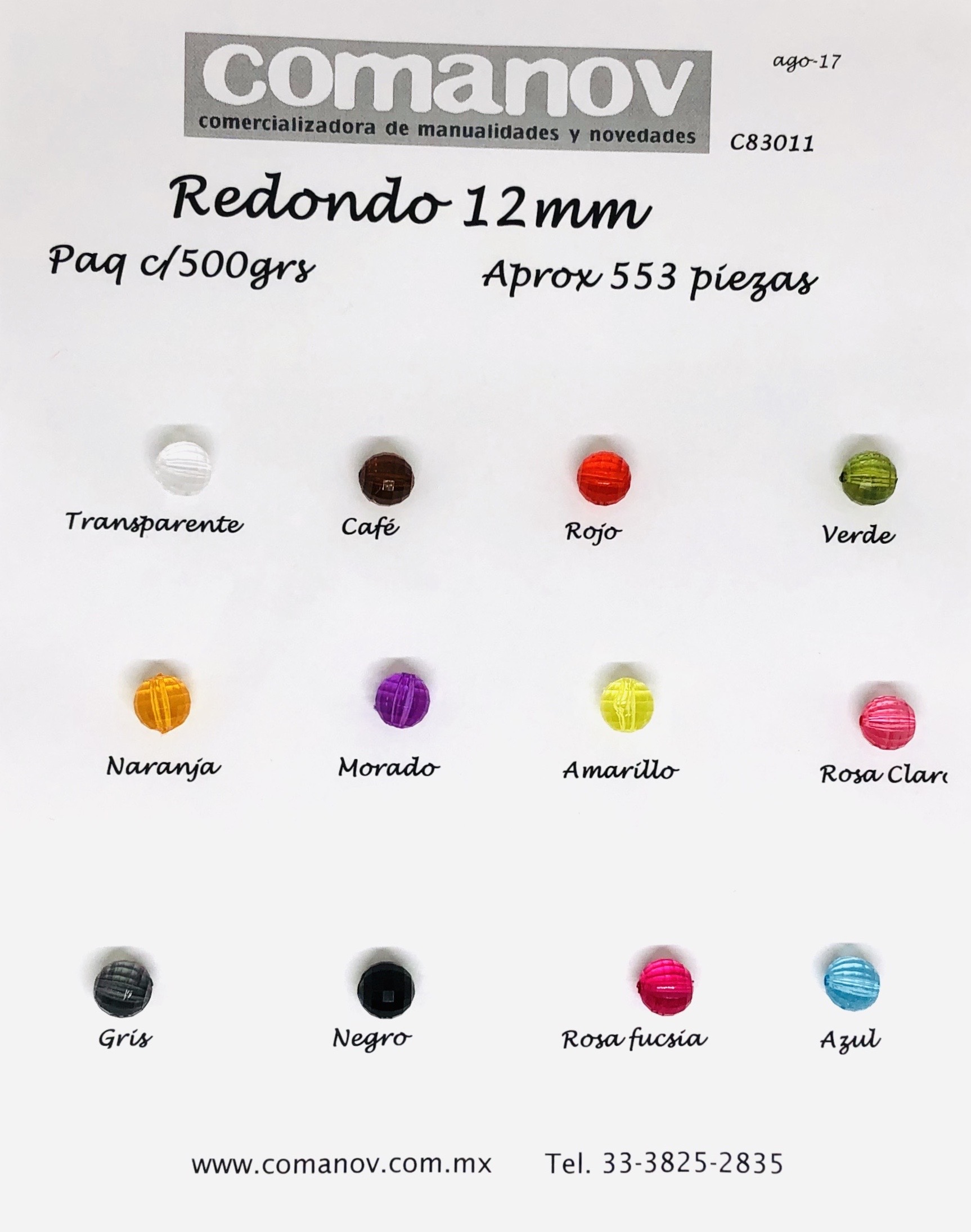 COLORES: TRANSP, CAFÉ, ROJO, VERDE, NARANJA, MORADO, AMARILLO, ROSITA, GRIS, NEGRO, FUCSIA Y AZUL. APROXIMADAMENTE XX PIEZAS EN 500GR. CARTON CON 20 BOLSAS DE 500GR.