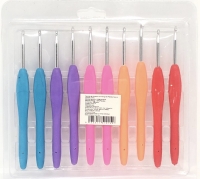 RECOMENDADO PARA QUIEN TEJE DURANTE MUCHO TIEMPO O QUE APRIETA MUCHO EL GANCHO AL TEJER. LOS COLORES PUEDEN VARIAR. EMPAQUE INTERNO: 11 PIEZAS. CARTON: 100 PAQUETES