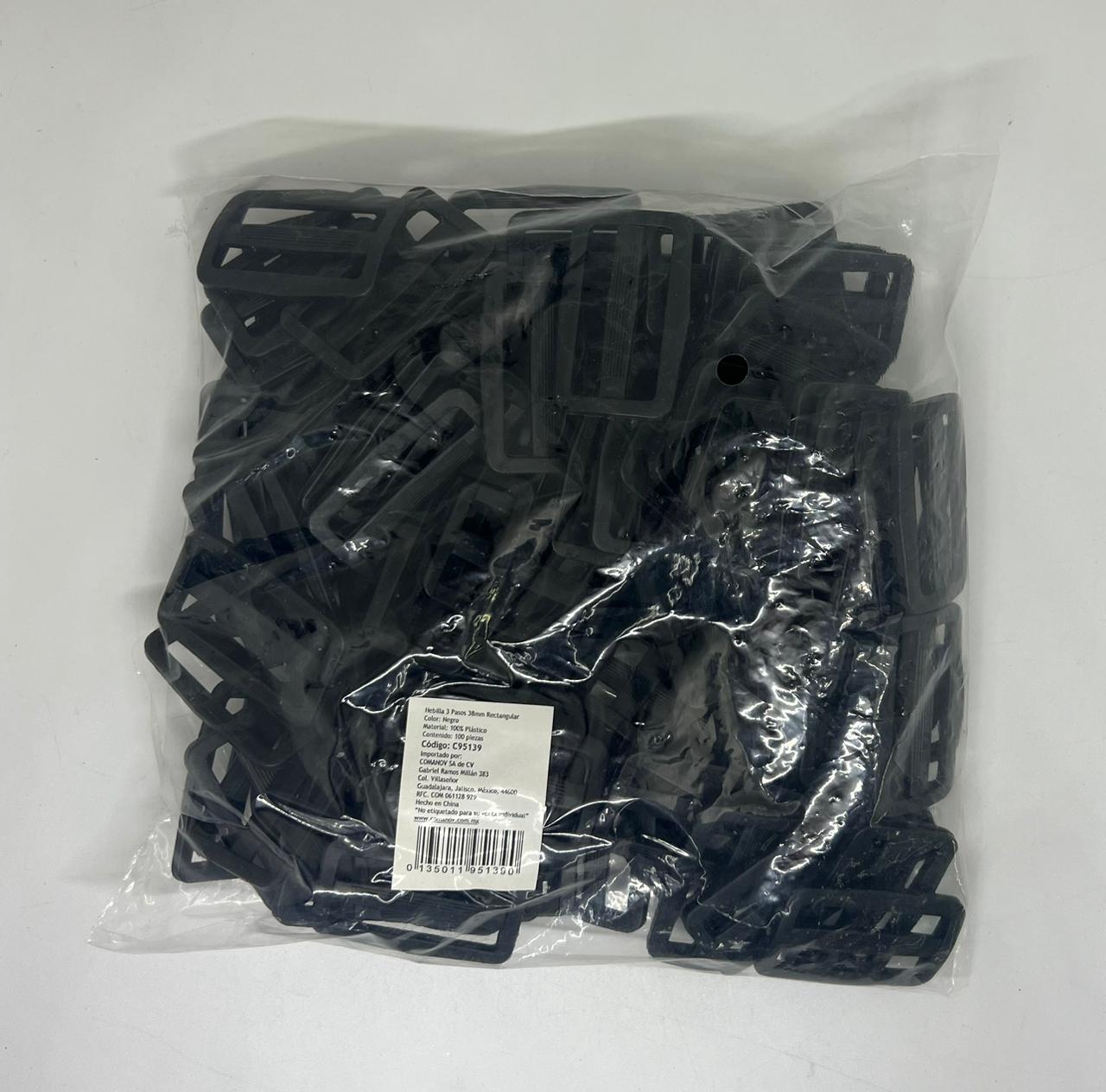 HEBILLA TRES PASOS RECTANGULAR 38MM C/100 PIEZAS