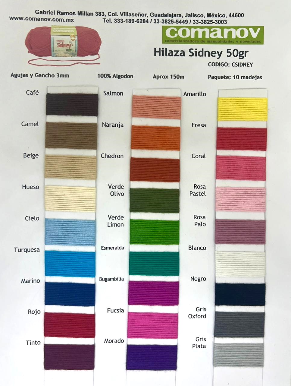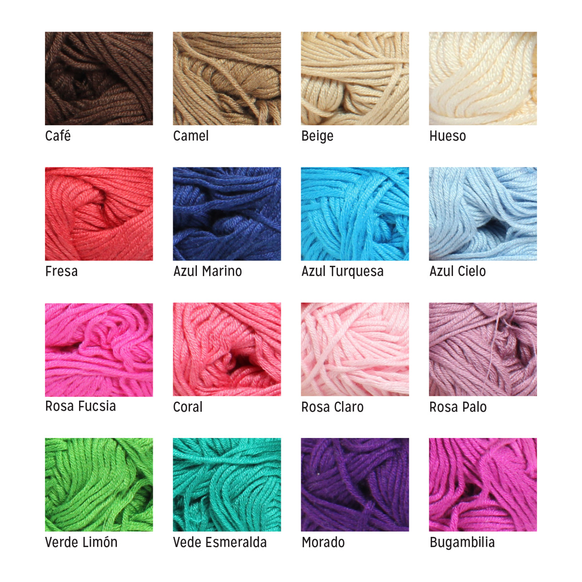 EMPAQUE INTERNO 10 PIEZAS. CARTON CON 200 PIEZAS. HECHO EN CHINA. MATERIAL 100% ALGODON. SE RECOMIENDA TEJER CON AGUJAS 3MM Y GANCHO ALUMINIO 3-3.5MM. APROXIMADAMENTE 150 METROS POR MADEJA