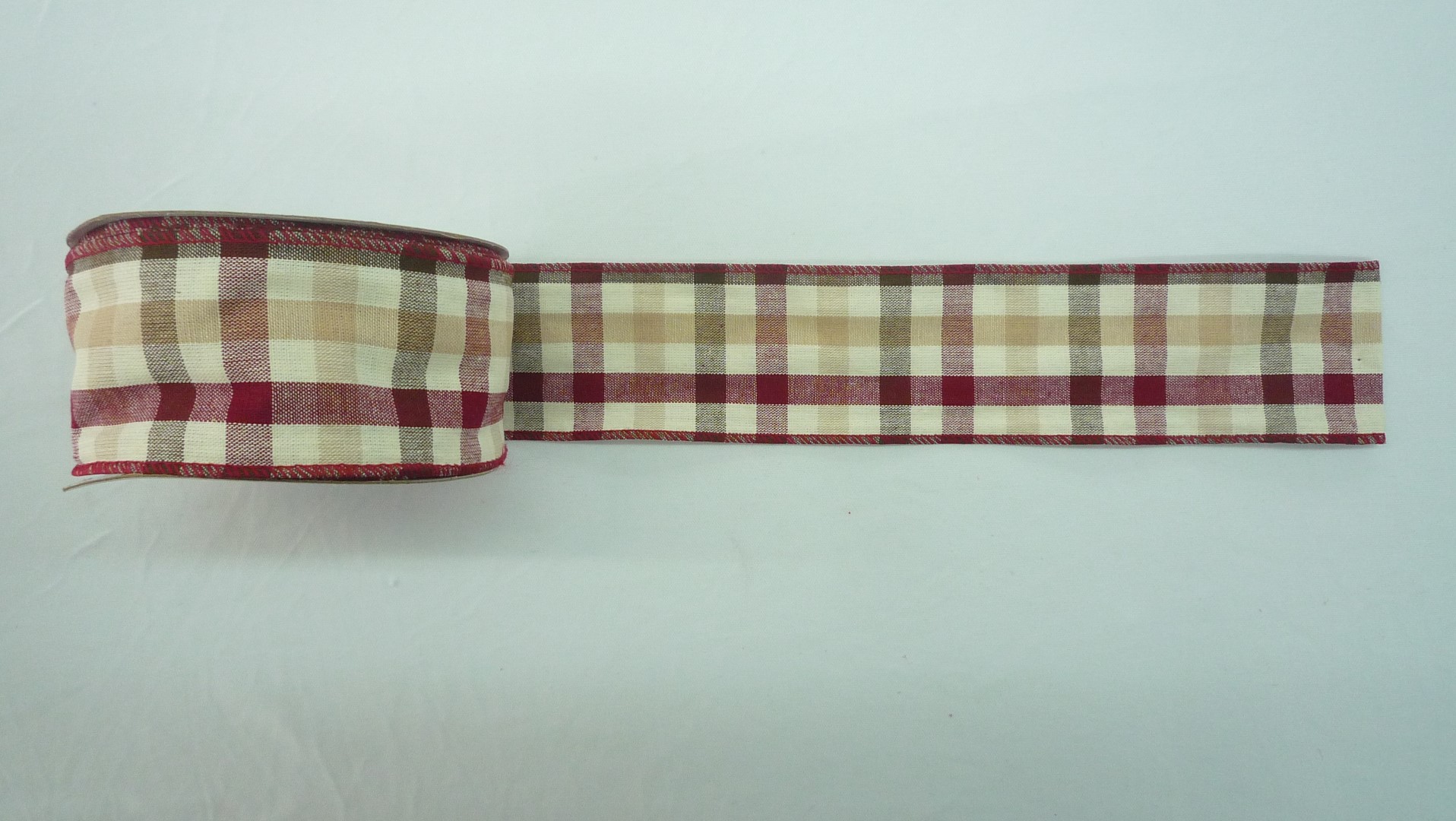 LISTON ESCOSES 5CM C/10M. COLOR ROJO / BEIGE. CARTON CON 100 ROLLOS