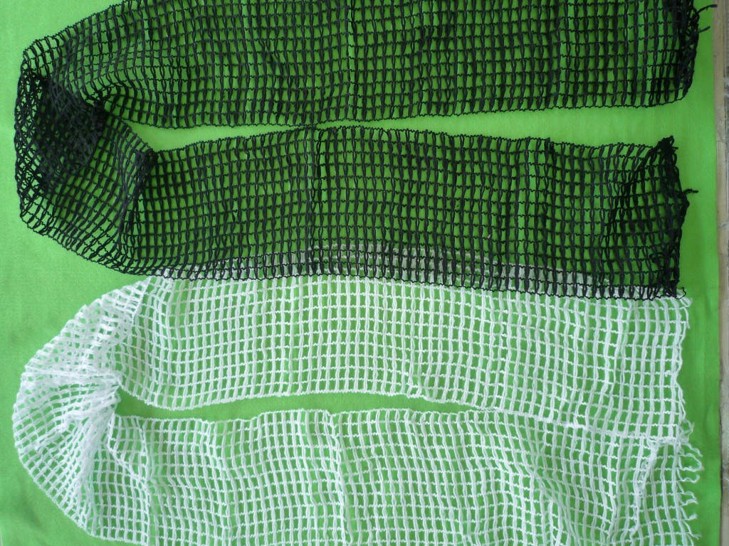 COLORES: BLANCO Y NEGRO. SE USA PARA PONER ESTAMBRE ENTRE LOS HUECOS Y FORMAR UNA BUFANDA. LA MAYORIA DE LAS VECES SE USA CON ESTAMBRES PLANOS COMO CINTILLAS ANCHAS. SE PUEDEN UNIR VARIAS MALLAS PARA CREAR EL TAMANO DESEADO. CARTON CON 100 PIEZAS