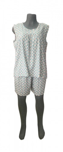 CARTON CON 180 JUEGOS. MATERIAL: 100% BAMBU. LA VENTAJA DEL BAMBU ES QUE ES SUAVE COMO LA SEDA Y FRESCO COMO EL ALGODON. BLUSA: ANCHO: 116CM, LARGO: 64CM. SHORT: CINTURA: 66CM A 118CM CINTURA. LARGO: 43CM. TALLA UNITALLA