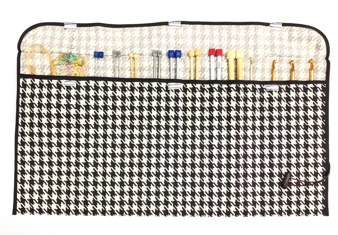 ESTUCHE DE TELA PARA GUARDAR LAS AGUJAS PARA TEJER DE MAXIMO 35CM DE ALTO.