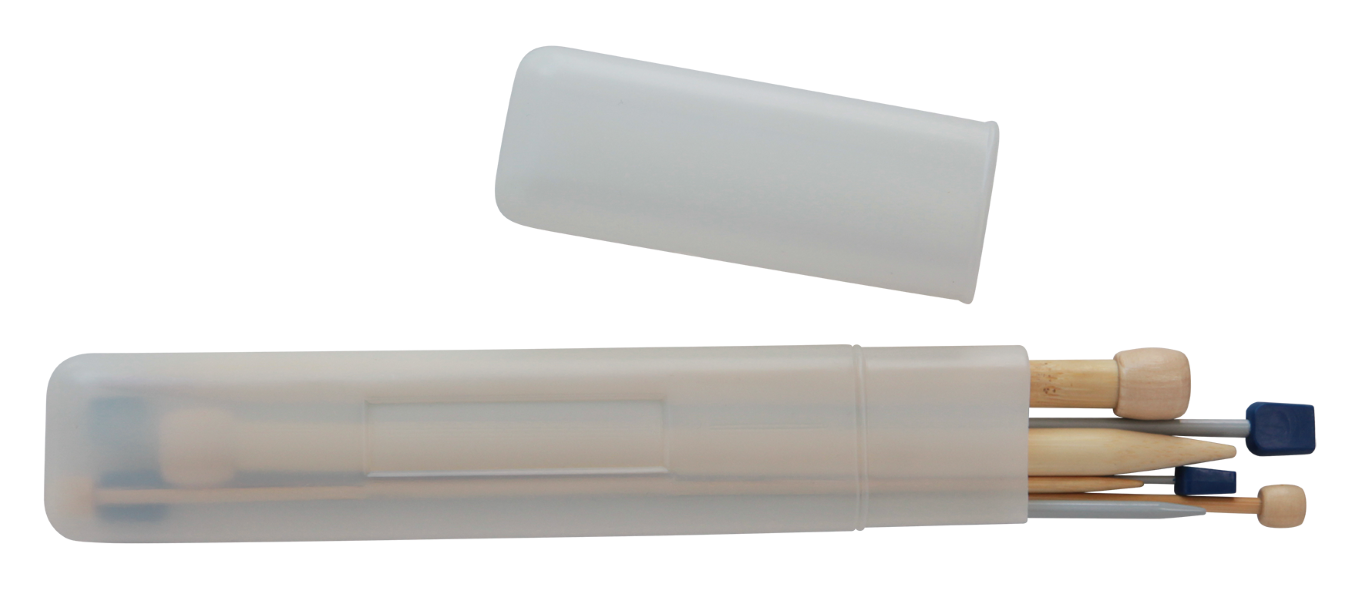 ESTUCHE DE PLASTICO PARA GUARDAR LAS AGUJAS DE TEJER O PINCELES DE PINTURA. CARTON CON 200 PIEZAS