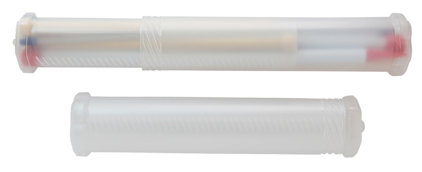 ESTUCHE DE PLASTICO PARA GUARDAR LAS AGUJAS DE TEJER O PINCELES DE PINTURA. ESTE ESTUCHE SE EXPANDE DESDE 25CM HASTA 45CM. TIENE UN SISTEMA DE ROSCA. CARTON CON 100 PIEZAS
