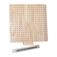 CARTON CON 20 PIEZAS. DISTANCIA ENTRE AGUJEROS: 1CM. INCLUYE: 1 TABLERO DE MADERA, 1 BASE DE MADERA PARA SOSTENERLO, 5 AGUJAS ACERO DE 5CM, 20 PALITOS DE ACERO DE 10CM